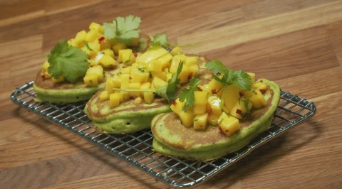 Pancakesy z mango, chili i kolendrą