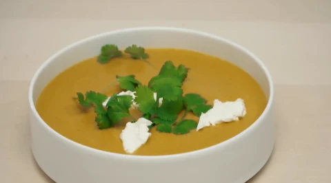 Krem z pieczonych batatów z ricottą i kolendrą