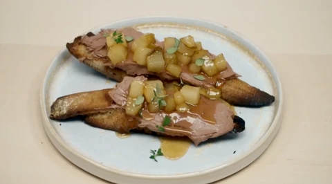 Tosty z imbirowymi pomidorami i chipsami z szalotki