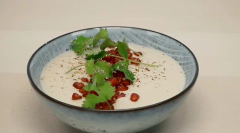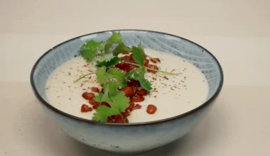 Krem z kalafiora z tahini i granatem