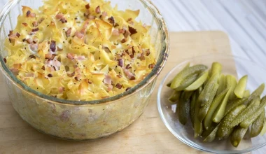Šunkofleky, najprostsza zapiekanka z makaronu