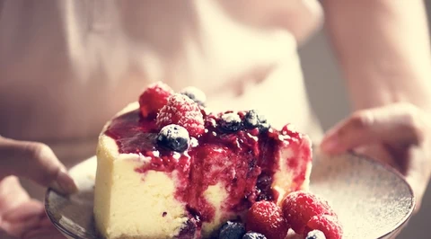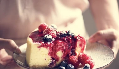 Pistacjowy sernik z malinami