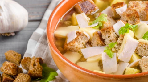 Zupa porowa z grzankami