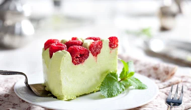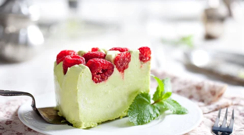 Pistacjowy sernik z malinami