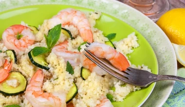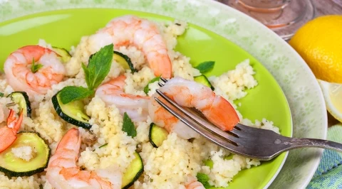 Krewetki z kaszą jaglaną
