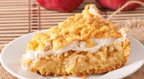 Jabłecznik z budyniową bezą i kruszonką