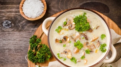 Krem z pora z wędzonym łososiem