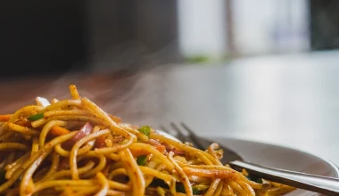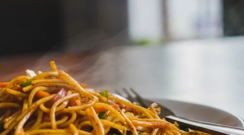 Makaron chow mein z mięsem i warzywami