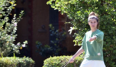 Sara Sampaio na spacerze w puchatych kapciach