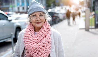 Siwe włosy i elegancki płaszcz. Duet, który zawsze wygląda stylowo