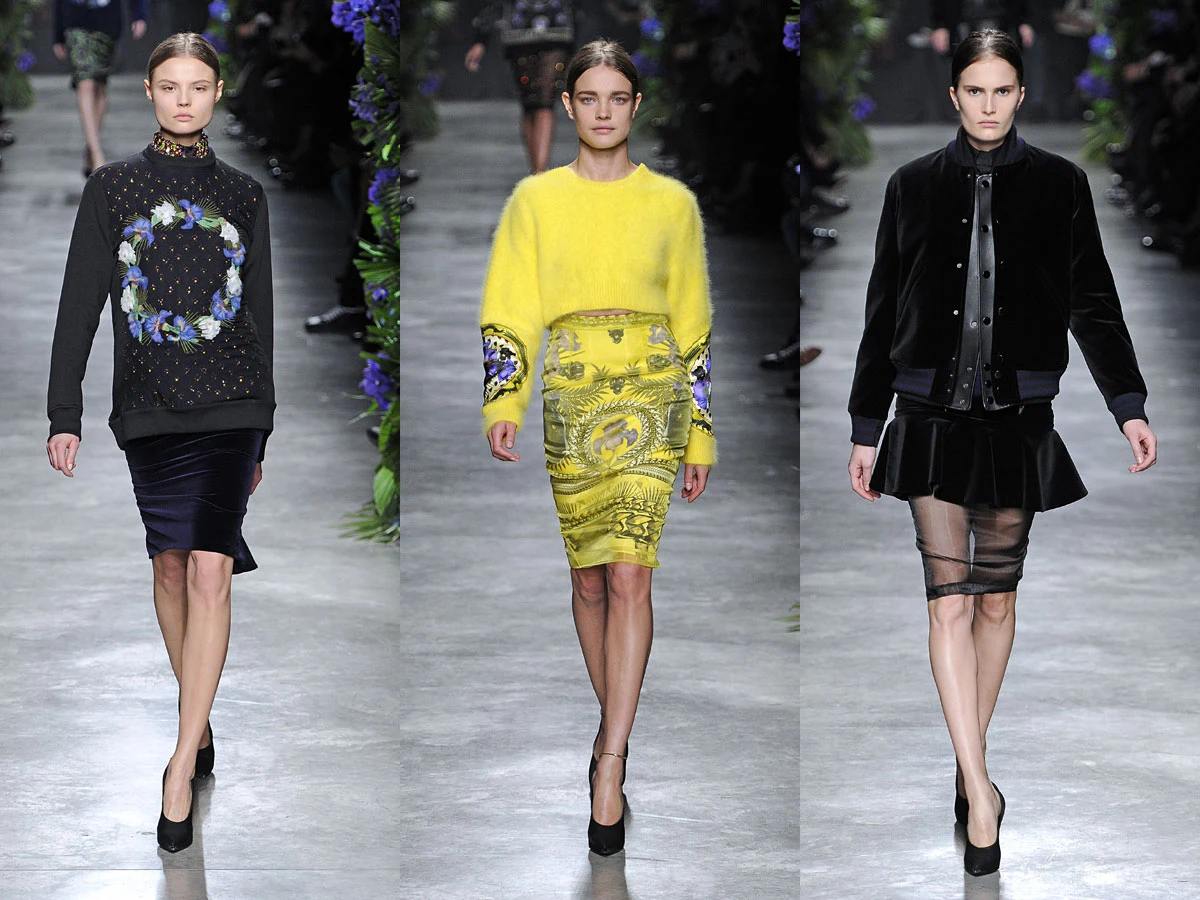 I nikomu nie przeszkadzało, ze to wariacje na ten sam temat. Ricardo Tisci pokazał, jak różne mogą być stylizacje ze spódnicą typu ołówek w roli głównej. Futurystyczno-barokowe nadruki przypominały stylistykę Versace z lat 80. Toczki z rogami to już odkrycie Tisciego.