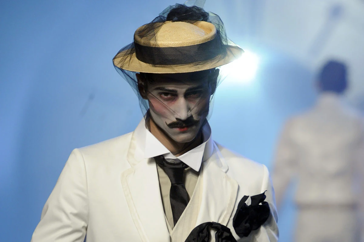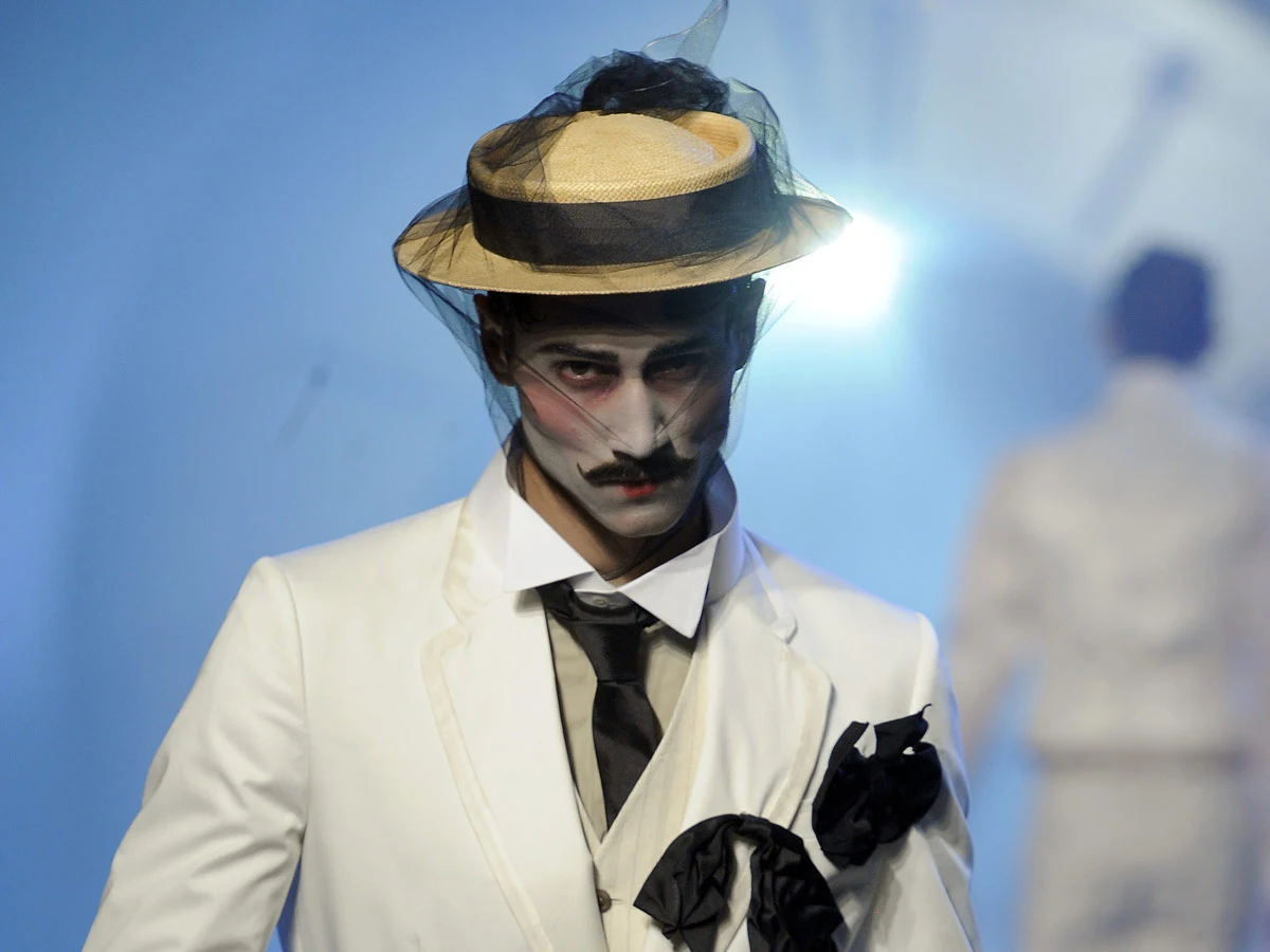 Całość, utrzymana w stonowanych kolorach - głównie czerni, bieli i odcieniach szarości - nawiązuje do mody lat 20. Eleganckie marynarki zestawione z szerokimi, wyraźnie za dużymi spodniami, dają nieco karykaturalny efekt, przywołujący na myśl najsłynniejszą kreację aktorską Charliego Chaplina, a ucharakteryzowanie modeli nie pozostawia żadnych wątpliwości.